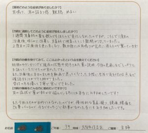 産後、子供の世話で身体が凝り、神経痛を発症していました。
